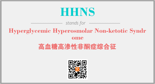 英文缩略词“HHNS”经常作为“Hyperglycemic Hyperosmolar Non-ketotic Syndrome”的英文缩写来使用,中文表示:“高血糖高渗性非酮症综合征”。本文将详细介绍英文缩写词HHNS所代表英文单词,其对应的中文拼音、详细解释以及在英语中的流行度。此外,还有关于缩略词HHNS的分类、应用领域及相关应用示例等。