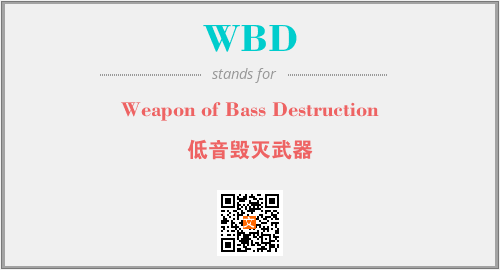 上述内容是“Weapon of Bass Destruction”作为“WBD”的缩写,解释为“低音毁灭武器”时的信息,以及英文缩略词WBD所代表的英文单词,其对应的中文拼音、详细解释以及在英文中的流行度和相关分类、应用领域及应用示例等。