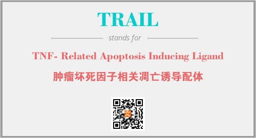 英文缩略词“TRAIL”经常作为“TNF- Related Apoptosis Inducing Ligand”的英文缩写来使用,中文表示:“肿瘤坏死因子相关凋亡诱导配体”。本文将详细介绍英文缩写词TRAIL所代表英文单词,其对应的中文拼音、详细解释以及在英语中的流行度。此外,还有关于缩略词TRAIL的分类、应用领域及相关应用示例等。