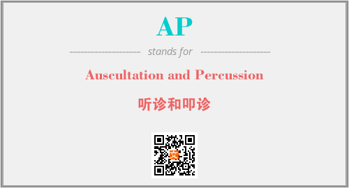 英文缩略词“AP”经常作为“Auscultation and Percussion”的英文缩写来使用,中文表示:“听诊和叩诊”。本文将详细介绍英文缩写词AP所代表英文单词,其对应的中文拼音、详细解释以及在英语中的流行度。此外,还有关于缩略词AP的分类、应用领域及相关应用示例等。