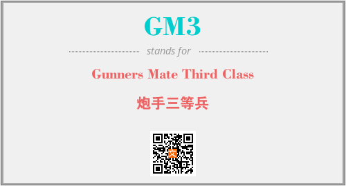 英文缩略词“GM3”经常作为“Gunners Mate Third Class”的英文缩写来使用,中文表示:“炮手三等兵”。本文将详细介绍英文缩写词GM3所代表英文单词,其对应的中文拼音、详细解释以及在英语中的流行度。此外,还有关于缩略词GM3的分类、应用领域及相关应用示例等。