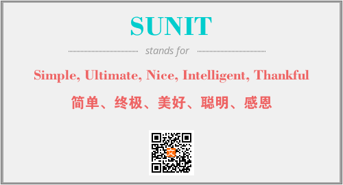 上述内容是“Simple, Ultimate, Nice, Intelligent, Thankful”作为“SUNIT”的缩写,解释为“简单、终极、美好、聪明、感恩”时的信息,以及英文缩略词SUNIT所代表的英文单词,其对应的中文拼音、详细解释以及在英文中的流行度和相关分类、应用领域及应用示例等。