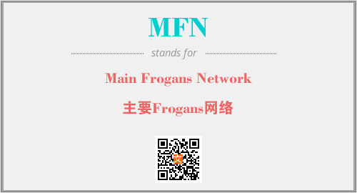 上述内容是“Main Frogans Network”作为“MFN”的缩写,解释为“主要Frogans网络”时的信息,以及英文缩略词MFN所代表的英文单词,其对应的中文拼音、详细解释以及在英文中的流行度和相关分类、应用领域及应用示例等。