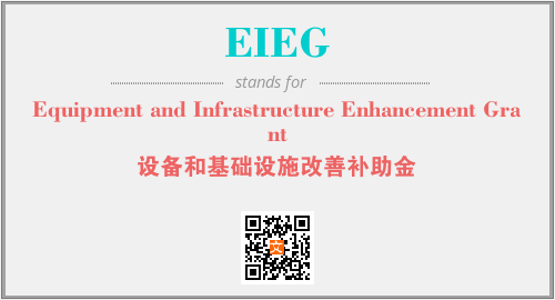 上述内容是“Equipment and Infrastructure Enhancement Grant”作为“EIEG”的缩写,解释为“设备和基础设施改善补助金”时的信息,以及英文缩略词EIEG所代表的英文单词,其对应的中文拼音、详细解释以及在英文中的流行度和相关分类、应用领域及应用示例等。
