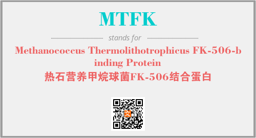 上述内容是“Methanococcus Thermolithotrophicus FK-506-binding Protein”作为“MTFK”的缩写,解释为“热石营养甲烷球菌FK-506结合蛋白”时的信息,以及英文缩略词MTFK所代表的英文单词,其对应的中文拼音、详细解释以及在英文中的流行度和相关分类、应用领域及应用示例等。