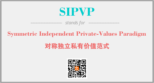 上述内容是“Symmetric Independent Private-Values Paradigm”作为“SIPVP”的缩写,解释为“对称独立私有价值范式”时的信息,以及英文缩略词SIPVP所代表的英文单词,其对应的中文拼音、详细解释以及在英文中的流行度和相关分类、应用领域及应用示例等。