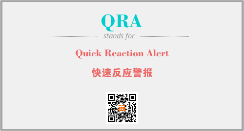 英文缩略词“QRA”经常作为“Quick Reaction Alert”的英文缩写来使用,中文表示:“快速反应警报”。本文将详细介绍英文缩写词QRA所代表英文单词,其对应的中文拼音、详细解释以及在英语中的流行度。此外,还有关于缩略词QRA的分类、应用领域及相关应用示例等。