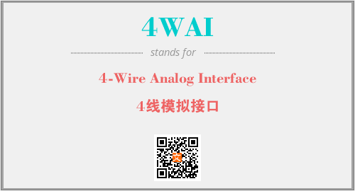 上述内容是“4-Wire Analog Interface”作为“4WAI”的缩写,解释为“4线模拟接口”时的信息,以及英文缩略词4WAI所代表的英文单词,其对应的中文拼音、详细解释以及在英文中的流行度和相关分类、应用领域及应用示例等。