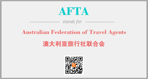 上述内容是“Australian Federation of Travel Agents”作为“AFTA”的缩写,解释为“澳大利亚旅行社联合会”时的信息,以及英文缩略词AFTA所代表的英文单词,其对应的中文拼音、详细解释以及在英文中的流行度和相关分类、应用领域及应用示例等。