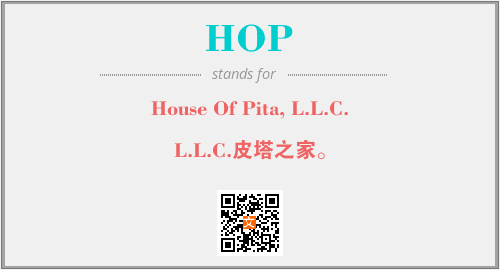 上述内容是“House Of Pita, L.L.C.”作为“HOP”的缩写,解释为“L.L.C.皮塔之家。”时的信息,以及英文缩略词HOP所代表的英文单词,其对应的中文拼音、详细解释以及在英文中的流行度和相关分类、应用领域及应用示例等。