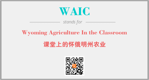 上述内容是“Wyoming Agriculture In the Classroom”作为“WAIC”的缩写,解释为“课堂上的怀俄明州农业”时的信息,以及英文缩略词WAIC所代表的英文单词,其对应的中文拼音、详细解释以及在英文中的流行度和相关分类、应用领域及应用示例等。