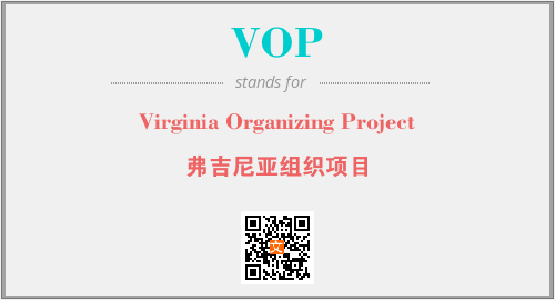 上述内容是“Virginia Organizing Project”作为“VOP”的缩写,解释为“弗吉尼亚组织项目”时的信息,以及英文缩略词VOP所代表的英文单词,其对应的中文拼音、详细解释以及在英文中的流行度和相关分类、应用领域及应用示例等。