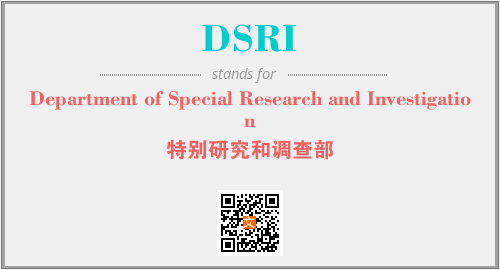 上述内容是“Department of Special Research and Investigation”作为“DSRI”的缩写,解释为“特别研究和调查部”时的信息,以及英文缩略词DSRI所代表的英文单词,其对应的中文拼音、详细解释以及在英文中的流行度和相关分类、应用领域及应用示例等。