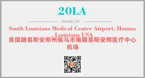 上述内容是“South Louisiana Medical Center Airport, Houma, Louisiana USA”作为“20LA”的缩写,解释为“美国路易斯安那州侯马市南路易斯安那医疗中心机场”时的信息,以及英文缩略词20LA所代表的英文单词,其对应的中文拼音、详细解释以及在英文中的流行度和相关分类、应用领域及应用示例等。