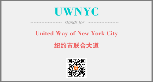 英文缩略词“UWNYC”经常作为“United Way of New York City”的英文缩写来使用,中文表示:“纽约市联合大道”。本文将详细介绍英文缩写词UWNYC所代表英文单词,其对应的中文拼音、详细解释以及在英语中的流行度。此外,还有关于缩略词UWNYC的分类、应用领域及相关应用示例等。