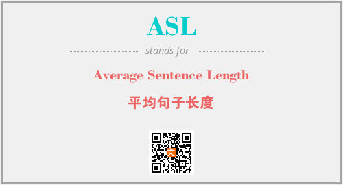 上述内容是“Average Sentence Length”作为“ASL”的缩写,解释为“平均句子长度”时的信息,以及英文缩略词ASL所代表的英文单词,其对应的中文拼音、详细解释以及在英文中的流行度和相关分类、应用领域及应用示例等。