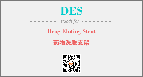 上述内容是“Drug Eluting Stent”作为“DES”的缩写,解释为“药物洗脱支架”时的信息,以及英文缩略词DES所代表的英文单词,其对应的中文拼音、详细解释以及在英文中的流行度和相关分类、应用领域及应用示例等。