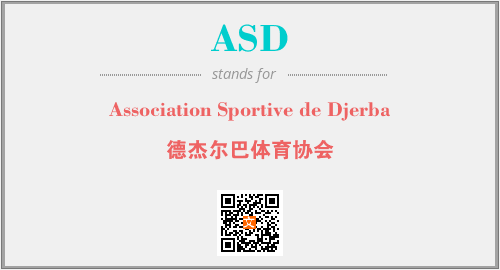 上述内容是“Association Sportive de Djerba”作为“ASD”的缩写,解释为“德杰尔巴体育协会”时的信息,以及英文缩略词ASD所代表的英文单词,其对应的中文拼音、详细解释以及在英文中的流行度和相关分类、应用领域及应用示例等。