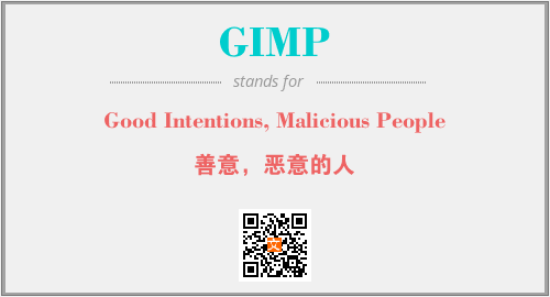 英文缩略词“GIMP”经常作为“Good Intentions, Malicious People”的英文缩写来使用,中文表示:“善意,恶意的人”。本文将详细介绍英文缩写词GIMP所代表英文单词,其对应的中文拼音、详细解释以及在英语中的流行度。此外,还有关于缩略词GIMP的分类、应用领域及相关应用示例等。