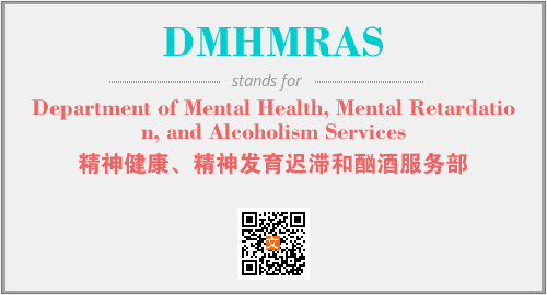 上述内容是“Department of Mental Health, Mental Retardation, and Alcoholism Services”作为“DMHMRAS”的缩写,解释为“精神健康、精神发育迟滞和酗酒服务部”时的信息,以及英文缩略词DMHMRAS所代表的英文单词,其对应的中文拼音、详细解释以及在英文中的流行度和相关分类、应用领域及应用示例等。
