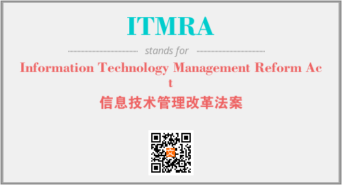 上述内容是“Information Technology Management Reform Act”作为“ITMRA”的缩写,解释为“信息技术管理改革法案”时的信息,以及英文缩略词ITMRA所代表的英文单词,其对应的中文拼音、详细解释以及在英文中的流行度和相关分类、应用领域及应用示例等。