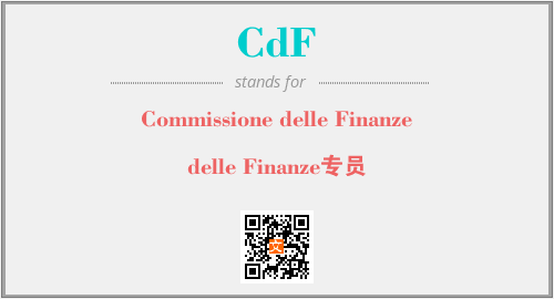 英文缩略词“CdF”经常作为“Commissione delle Finanze”的英文缩写来使用,中文表示:“delle Finanze专员”。本文将详细介绍英文缩写词CdF所代表英文单词,其对应的中文拼音、详细解释以及在英语中的流行度。此外,还有关于缩略词CdF的分类、应用领域及相关应用示例等。