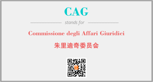上述内容是“Commissione degli Affari Giuridici”作为“CAG”的缩写,解释为“朱里迪奇委员会”时的信息,以及英文缩略词CAG所代表的英文单词,其对应的中文拼音、详细解释以及在英文中的流行度和相关分类、应用领域及应用示例等。