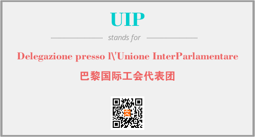 上述内容是“Delegazione presso l\'Unione InterParlamentare”作为“UIP”的缩写,解释为“巴黎国际工会代表团”时的信息,以及英文缩略词UIP所代表的英文单词,其对应的中文拼音、详细解释以及在英文中的流行度和相关分类、应用领域及应用示例等。