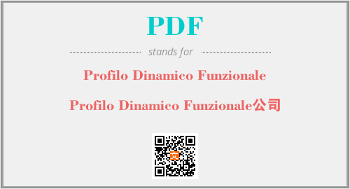 上述内容是“Profilo Dinamico Funzionale”作为“PDF”的缩写,解释为“Profilo Dinamico Funzionale公司”时的信息,以及英文缩略词PDF所代表的英文单词,其对应的中文拼音、详细解释以及在英文中的流行度和相关分类、应用领域及应用示例等。
