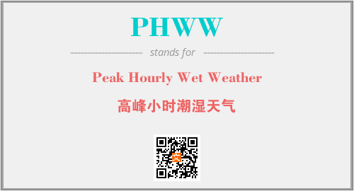 英文缩略词“PHWW”经常作为“Peak Hourly Wet Weather”的英文缩写来使用,中文表示:“高峰小时潮湿天气”。本文将详细介绍英文缩写词PHWW所代表英文单词,其对应的中文拼音、详细解释以及在英语中的流行度。此外,还有关于缩略词PHWW的分类、应用领域及相关应用示例等。