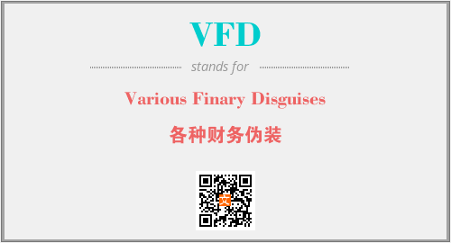 上述内容是“Various Finary Disguises”作为“VFD”的缩写,解释为“各种财务伪装”时的信息,以及英文缩略词VFD所代表的英文单词,其对应的中文拼音、详细解释以及在英文中的流行度和相关分类、应用领域及应用示例等。