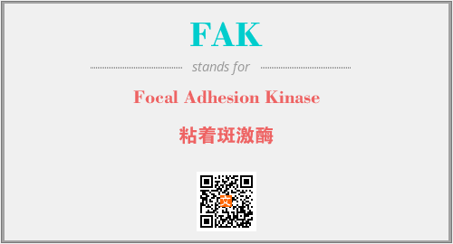 英文缩略词“FAK”经常作为“Focal Adhesion Kinase”的英文缩写来使用,中文表示:“粘着斑激酶”。本文将详细介绍英文缩写词FAK所代表英文单词,其对应的中文拼音、详细解释以及在英语中的流行度。此外,还有关于缩略词FAK的分类、应用领域及相关应用示例等。