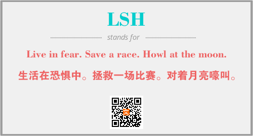 以上为Live in fear. Save a race. Howl at the moon.英文缩略词LSH的中文解释,以及该英文缩写在英语的流行度、分类和应用领域方面的信息。