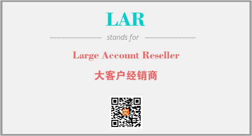 英文缩略词“LAR”经常作为“Large Account Reseller”的英文缩写来使用,中文表示:“大客户经销商”。本文将详细介绍英文缩写词LAR所代表英文单词,其对应的中文拼音、详细解释以及在英语中的流行度。此外,还有关于缩略词LAR的分类、应用领域及相关应用示例等。