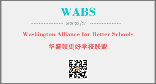 上述内容是“Washington Alliance for Better Schools”作为“WABS”的缩写,解释为“华盛顿更好学校联盟”时的信息,以及英文缩略词WABS所代表的英文单词,其对应的中文拼音、详细解释以及在英文中的流行度和相关分类、应用领域及应用示例等。