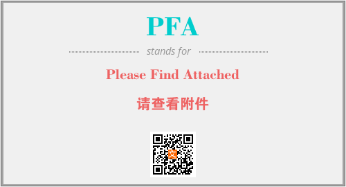 英文缩略词“PFA”经常作为“Please Find Attached”的英文缩写来使用,中文表示:“请查看附件”。本文将详细介绍英文缩写词PFA所代表英文单词,其对应的中文拼音、详细解释以及在英语中的流行度。此外,还有关于缩略词PFA的分类、应用领域及相关应用示例等。