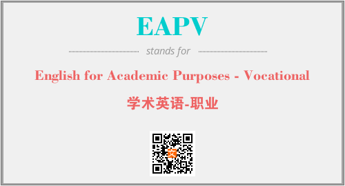 上述内容是“English for Academic Purposes - Vocational”作为“EAPV”的缩写,解释为“学术英语-职业”时的信息,以及英文缩略词EAPV所代表的英文单词,其对应的中文拼音、详细解释以及在英文中的流行度和相关分类、应用领域及应用示例等。