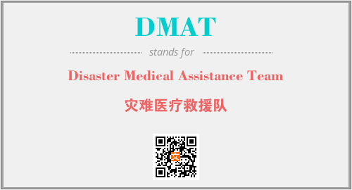 英文缩略词“DMAT”经常作为“Disaster Medical Assistance Team”的英文缩写来使用,中文表示:“灾难医疗救援队”。本文将详细介绍英文缩写词DMAT所代表英文单词,其对应的中文拼音、详细解释以及在英语中的流行度。此外,还有关于缩略词DMAT的分类、应用领域及相关应用示例等。
