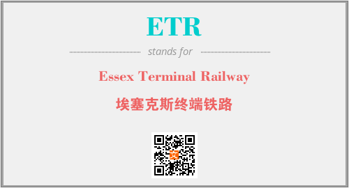 上述内容是“Essex Terminal Railway”作为“ETR”的缩写,解释为“埃塞克斯终端铁路”时的信息,以及英文缩略词ETR所代表的英文单词,其对应的中文拼音、详细解释以及在英文中的流行度和相关分类、应用领域及应用示例等。