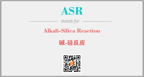 上述内容是“Alkali-Silica Reaction”作为“ASR”的缩写,解释为“碱-硅反应”时的信息,以及英文缩略词ASR所代表的英文单词,其对应的中文拼音、详细解释以及在英文中的流行度和相关分类、应用领域及应用示例等。