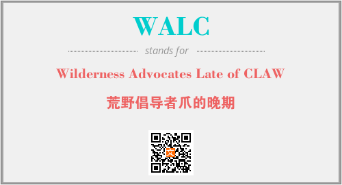 上述内容是“Wilderness Advocates Late of CLAW”作为“WALC”的缩写,解释为“荒野倡导者爪的晚期”时的信息,以及英文缩略词WALC所代表的英文单词,其对应的中文拼音、详细解释以及在英文中的流行度和相关分类、应用领域及应用示例等。