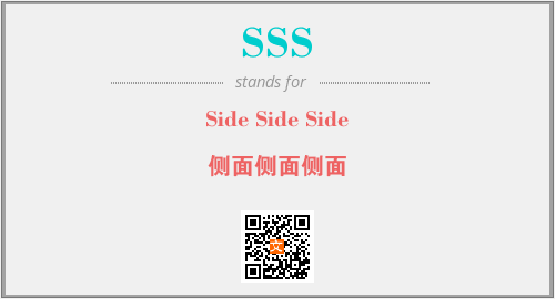 上述内容是“Side Side Side”作为“SSS”的缩写,解释为“侧面侧面侧面”时的信息,以及英文缩略词SSS所代表的英文单词,其对应的中文拼音、详细解释以及在英文中的流行度和相关分类、应用领域及应用示例等。