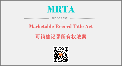 上述内容是“Marketable Record Title Act”作为“MRTA”的缩写,解释为“可销售记录所有权法案”时的信息,以及英文缩略词MRTA所代表的英文单词,其对应的中文拼音、详细解释以及在英文中的流行度和相关分类、应用领域及应用示例等。