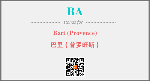以上为Bari (Provence)英文缩略词BA的中文解释,以及该英文缩写在英语的流行度、分类和应用领域方面的信息。