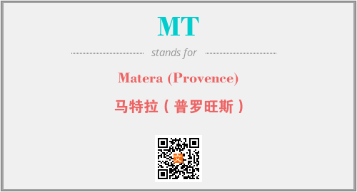 上述内容是“Matera (Provence)”作为“MT”的缩写,解释为“马特拉(普罗旺斯)”时的信息,以及英文缩略词MT所代表的英文单词,其对应的中文拼音、详细解释以及在英文中的流行度和相关分类、应用领域及应用示例等。