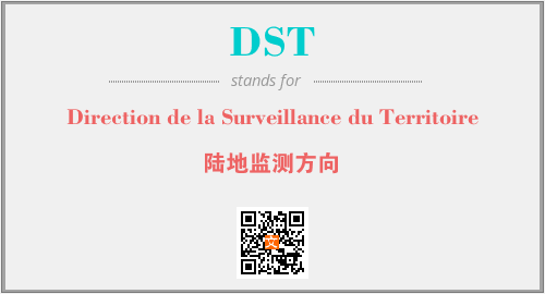 上述内容是“Direction de la Surveillance du Territoire”作为“DST”的缩写,解释为“陆地监测方向”时的信息,以及英文缩略词DST所代表的英文单词,其对应的中文拼音、详细解释以及在英文中的流行度和相关分类、应用领域及应用示例等。
