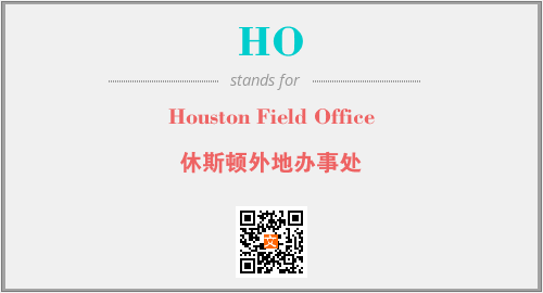 上述内容是“Houston Field Office”作为“HO”的缩写,解释为“休斯顿外地办事处”时的信息,以及英文缩略词HO所代表的英文单词,其对应的中文拼音、详细解释以及在英文中的流行度和相关分类、应用领域及应用示例等。
