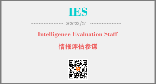 上述内容是“Intelligence Evaluation Staff”作为“IES”的缩写,解释为“情报评估参谋”时的信息,以及英文缩略词IES所代表的英文单词,其对应的中文拼音、详细解释以及在英文中的流行度和相关分类、应用领域及应用示例等。