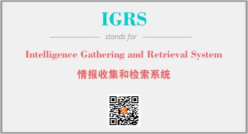 上述内容是“Intelligence Gathering and Retrieval System”作为“IGRS”的缩写,解释为“情报收集和检索系统”时的信息,以及英文缩略词IGRS所代表的英文单词,其对应的中文拼音、详细解释以及在英文中的流行度和相关分类、应用领域及应用示例等。