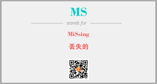 英文缩略词“MS”经常作为“MiSsing”的英文缩写来使用,中文表示:“丢失的”。本文将详细介绍英文缩写词MS所代表英文单词,其对应的中文拼音、详细解释以及在英语中的流行度。此外,还有关于缩略词MS的分类、应用领域及相关应用示例等。